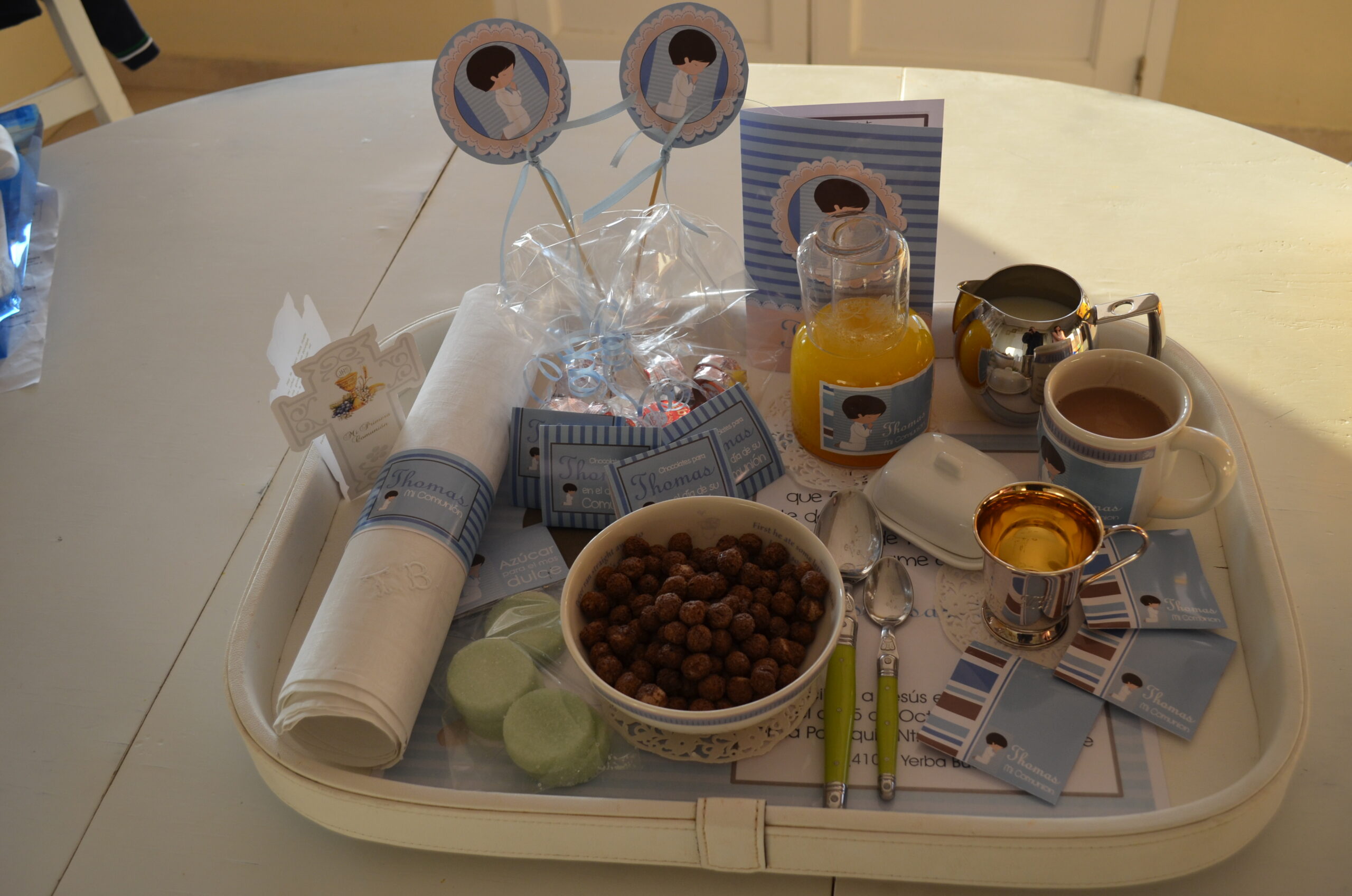 Bandejas Personalizadas con fotos y frase especial para el agasajado.