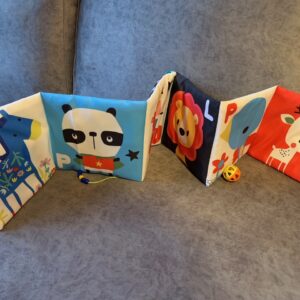 Se puede atar a la cuna . Usar del lado blanco, negro y rojo en los primeros meses del bebe. Luego invertir el juguete dejando a la vista la cara de colores.