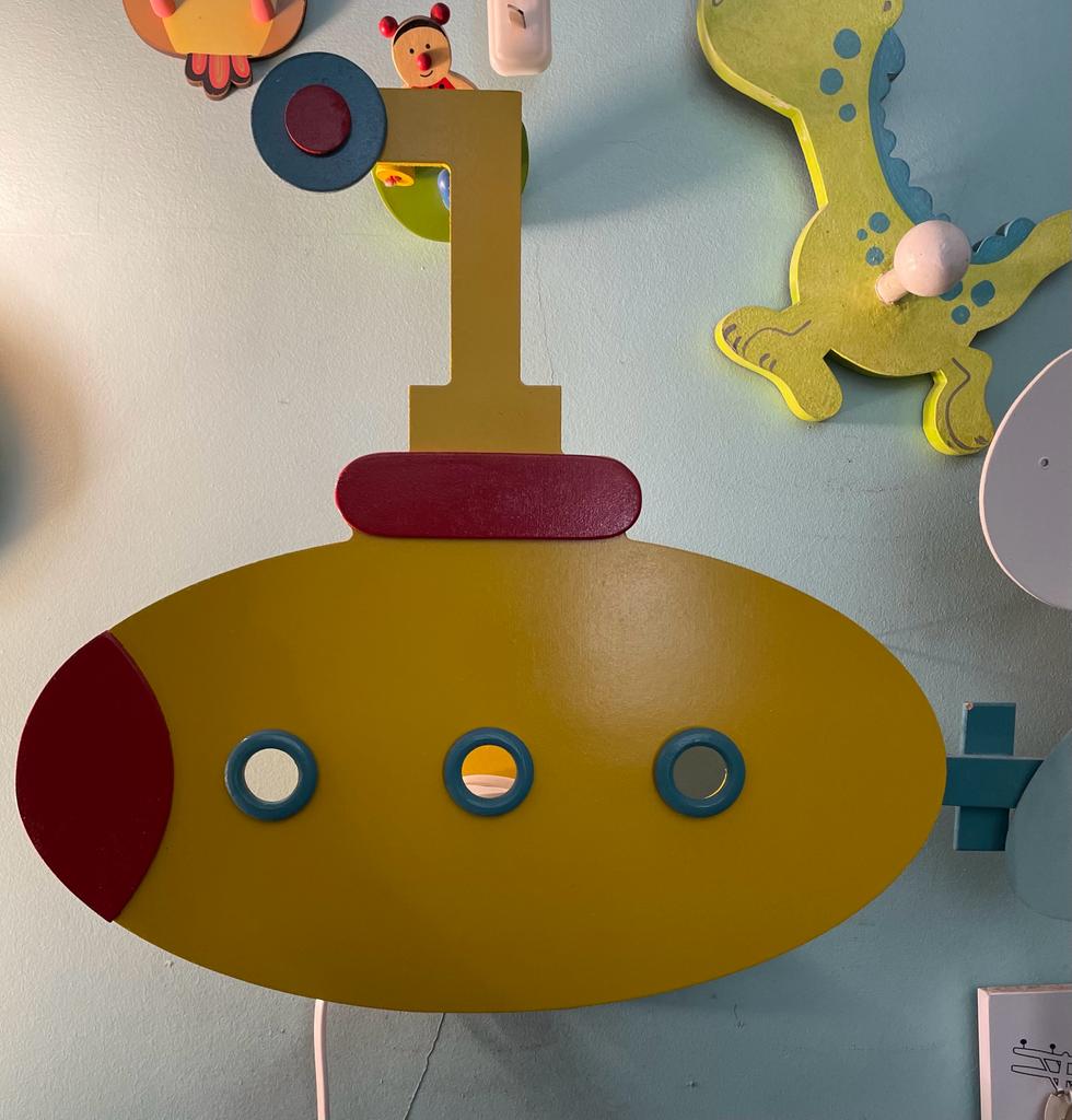 Lampara de madera laqueada, de pared. No necesita instalación especial ya que su cable posee interruptor y enchufe. Se cuelga como un cuadro.